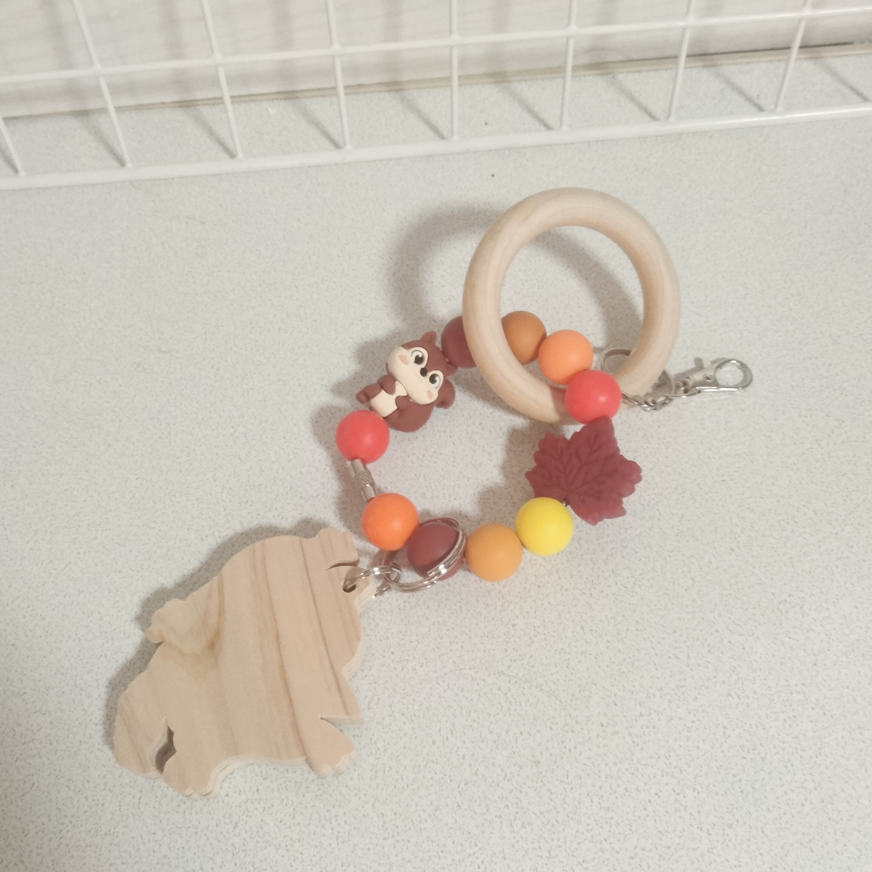 NEWフクロモモンガ玩具 秋シリーズ 直径6.5 安全な木材を、使用し、シリコンビーズ、水洗い、天日干し可能です♡