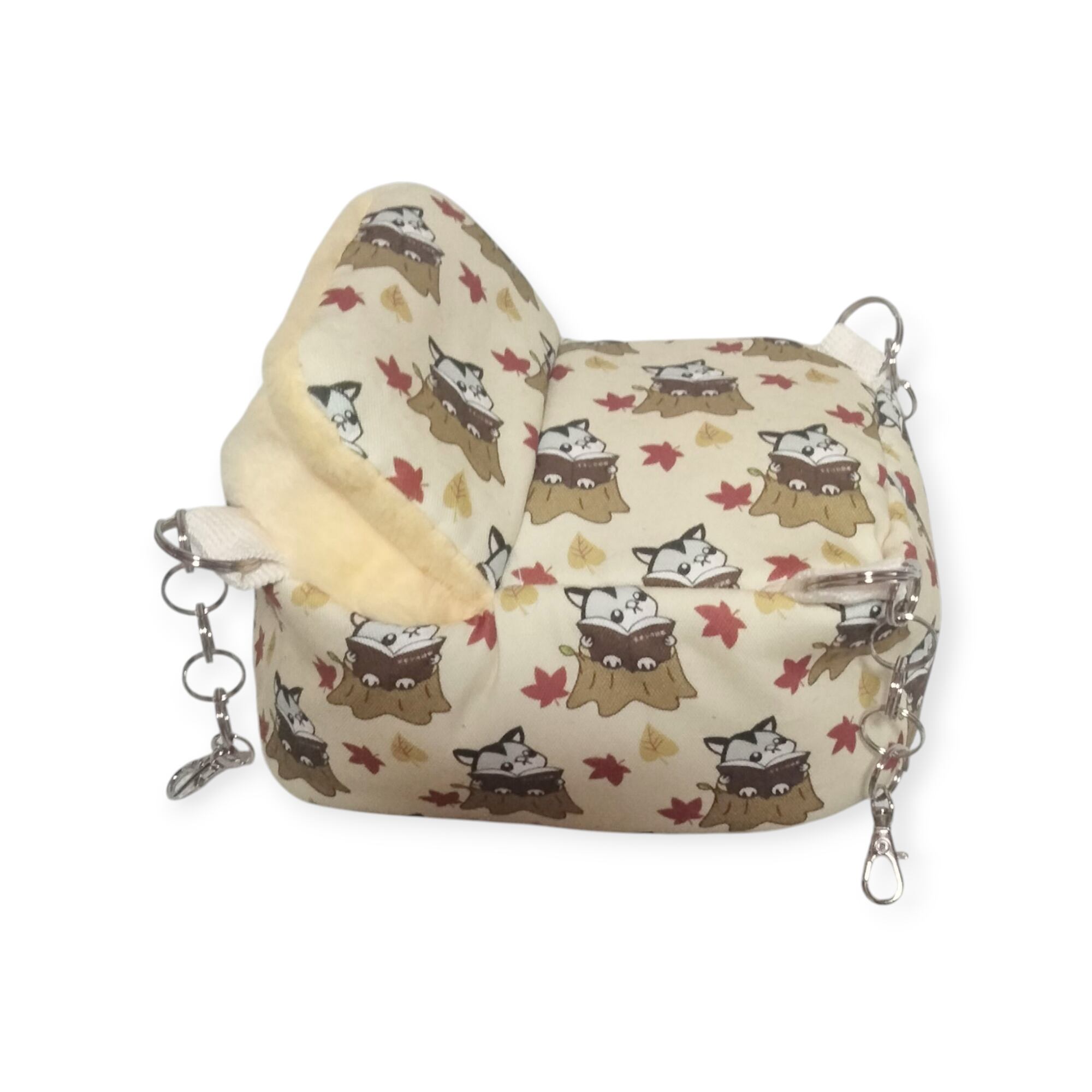 フクロモモンガ用ハンモックベット 2 匹〜3匹用Мサイズ 横幅16㌢奥行13㌢高さ9㌢ 内側縫い目なし♡ ラビットファー